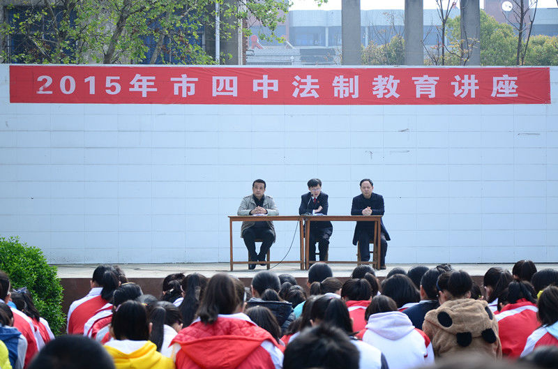 4月9日上午,老河口市人民法院法制辅导员李海兵走进该市第四中学,通过对青少年违法犯罪的解读和青少年学习生活中常见犯罪案例的讲解,为全校师生上了一堂意义深刻的法制教育课。
