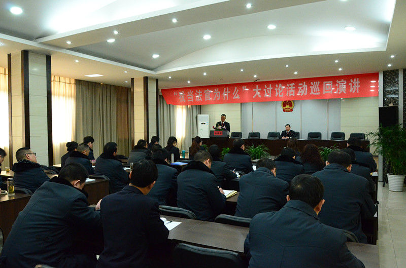 1月12日上午,襄阳市法院系统“我当法官为什么”大讨论活动巡回演讲在老河口市人民法院启动。来自襄城区、樊城区、襄州区、宜城市、南漳县及老河口市法院的优秀干警,用他们热情洋溢的演讲为全院干警诠释法官的责任与担当。
